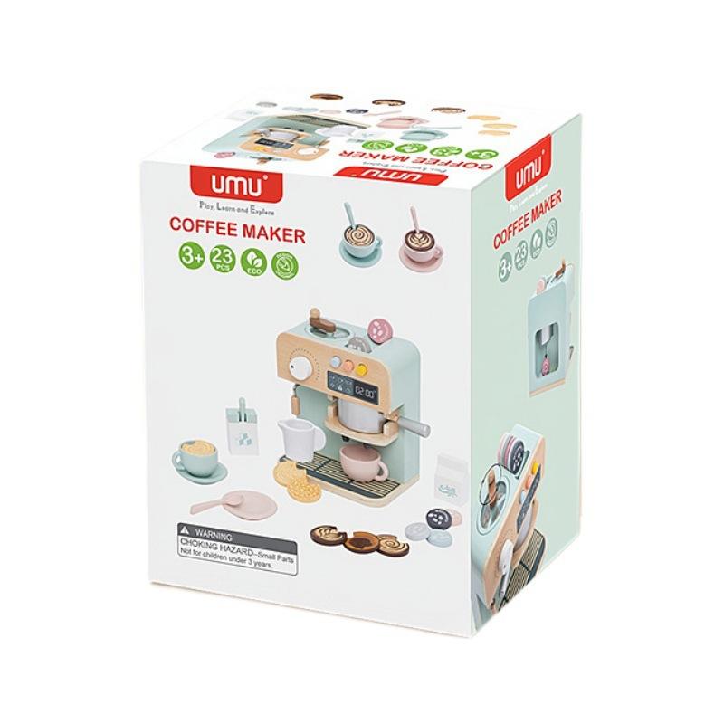 23Pcs Children Playhouse Wooden Simulation Coffee Maker Kitchen Toy Set Kids Montessori Educational Coffee Machine Puzzle Toy