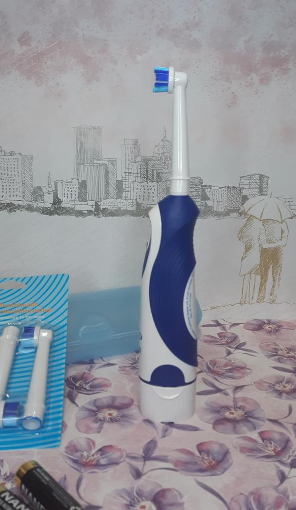 На связи сммщик Джума 👋 Сегодня я расскажу о своих впечатлениях от зубной щётки Oral-B. Электрическая зубная щётка уже давно не является чем-то эксклюзивным. Несмотря на это, я продолжал пользоваться обычной щёткой средней жесткости. И так бы продолжалось, пока мой стоматолог не порекомендовал протестировать ротерную Oral-B. Как говорится: сказано — сделано. Заказал этот базовый вариант. Я не видел смысла в наворотах, потому что ключевым плюсом для меня является максимально простое решение, включил и всё 😊 С момента заказа и до момента получения прошло чуть больше 30 дней. Забрал посылку, принёс домой и распаковал. Никаких повреждений на наборе не было. В комплект входит 5 насадок, а это значит, что на продолжительное время мне не нужно думать о поиске сменных. Приятно, что продавец сразу предусмотрел в наборе кейс, в который помещается сама щётка и две насадки. У основания щётки есть две кнопки, которые позволяют открыть отсек для батареек. Обратил внимание на обозначение полярности, закинул две пальчиковые батарейки и приступил к тестированию. После недели использования могу заключить, что процесс чистки зубов изменился. Поначалу смущала вибрация, но к ней быстро привыкаешь. Само вращение не кажется избыточным, а за 2-3 минуты можно полностью снять весь налёт без каких-либо дополнительных усилий, в этом и есть прелесть ротора. Из минусов, наверное, можно отметить только один режим работы, опять-таки, если это вообще можно отнести к минусам 😁 Мне щётка понравилась, и теперь не вернусь к обычной. Если у вас не было электрической щётки, то однозначно это хороший вариант для ознакомления.