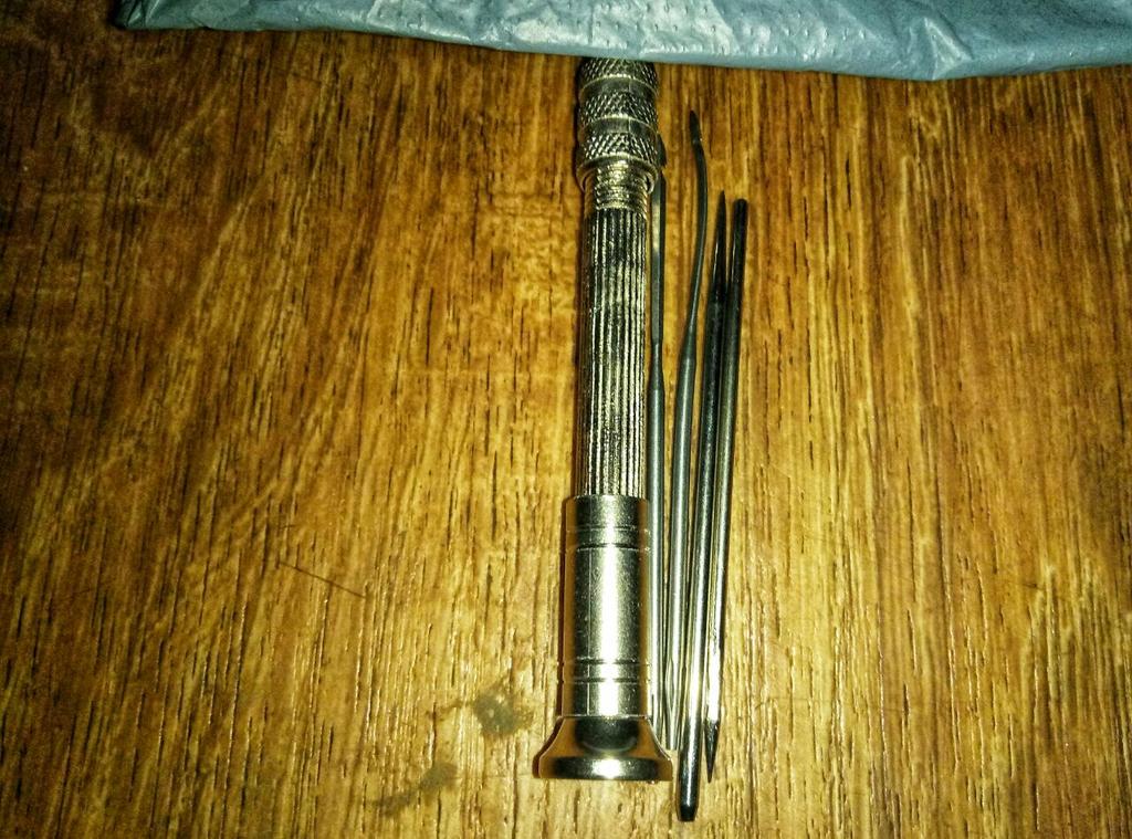 Отличный набор шил ! Набор шил идёт в комплекте с ручной дрелью. Сердечник ручной дрели, в который вставляются шила, вытаскивается, его можно перевернуть и вставить в дрель другим концом, в который можно крепить более тонкие приспособления - свёрла, иголки и т.п. Поэтому очень хорошая вещь, многофункциональная, хотя сначала подумала, что прислали брачок, пока не раскрутила дрель и не нашла сердечник "с секретом".