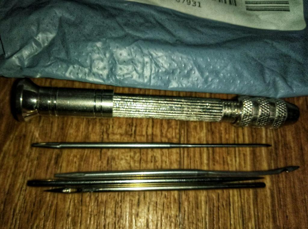 Сегодня испытал товар. Как оказалось, в тыльной части рукоятки имеется пенал с парой цанг для зажимания игл другого размера. Иглы довольно прочные, рукоятка удобная для прокалывания довольно толстых и прочных сшиваемых поверхностей материалов. Нитка (шнур) вытягивается обратно легче когда проворачиваешь шило на пол оборота или больше. Иглы для этого выполнены трёхгранными. Полагаю, в цанги можно зажать и сверлышко и миниатюрную отвёрточку. А вертлюг на тыльном торце добавит удобство вращению большим и средним пальцами с упором в торец указательным. Незначительные заусенцы, которые можно зачистить мелкой шкуркой или сами приработаются со временем, на деталях изделия не портят инструмент. Если бы был ещё пенал для хранения а не только целлофановый пакетик, было бы лучше. В целом изделием доволен. Рекомендую к приобретению мастерам-рукодельникам.