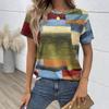 Women's Fashion Color Block Short Sleeve T-Shirt For Summer Geometric Graphic Tees Casual Round-neck Women Tops
